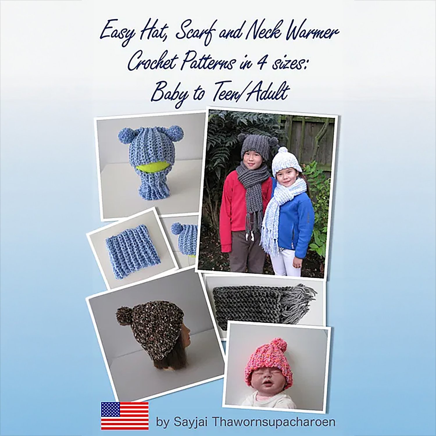Free Easy Hat, Scarf and Neck Warmer Crochet Patterns in 4 sizes: Baby to Teen/Adult