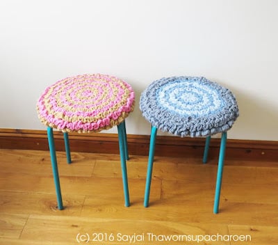 The Seat Pads and a Pet Bed crochet patterns are available in English using US crochet terms.
